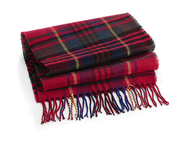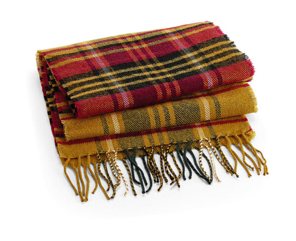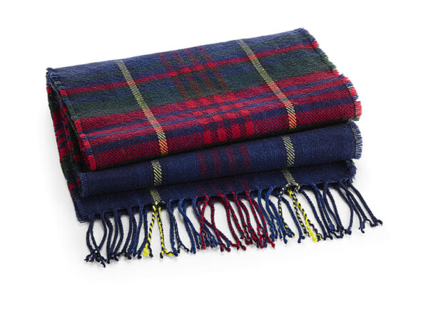 ·100% Polyacrylic (soft-touch) ·Woven check pattern ·Tassel trim ·TearAway adhesive fabric label ·Dimensions: 181 x 31 cm ·Unisex.